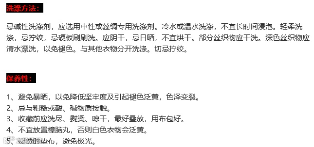 小贴士;如果要使真丝衣物色泽鲜艳,绸面光亮,可在冲洗时滴几滴食醋,能保持鲜艳度。