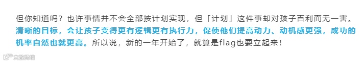 所以,我们在帮助孩子制订新年计划前要有一个“why”,要是孩子自己的心愿,而不是父母强加的!平等沟通的前提下,引导和了解孩子的梦想,并且让孩子感受到制订计划是为了实现自己梦想的!
