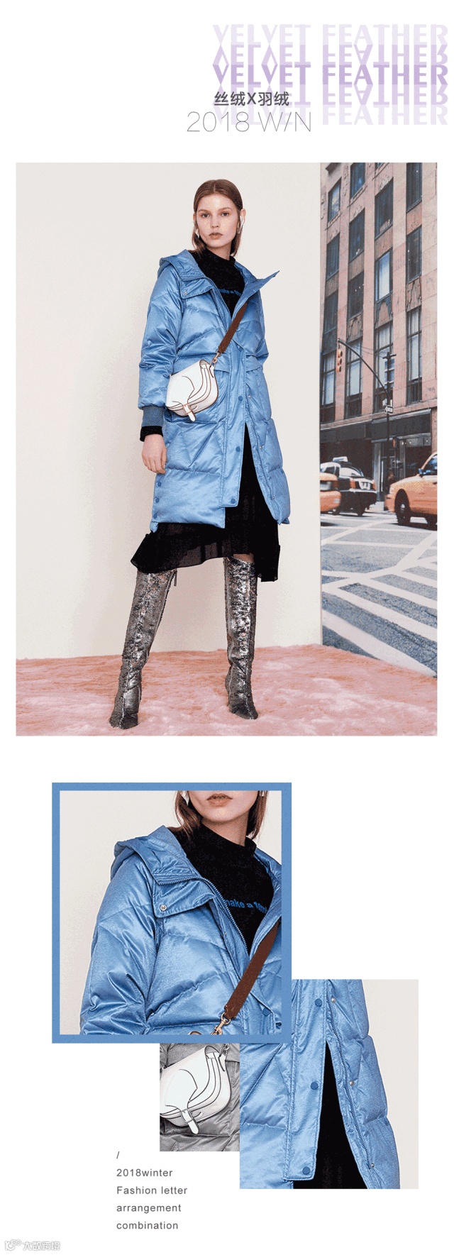 光泽满溢、触感丝滑、自带复古气息,丝绒是冬季最有气质的元素,精选的白鸭绒,绒毛满满,蓬松又轻盈。两种材质的结合带来不可言喻的满足感,无论是看上去,还是摸上去,都暖得很高级!