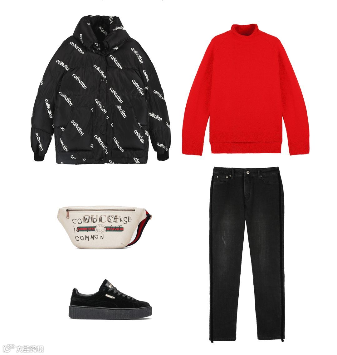 想必关注时尚的水晶女孩都发现了,现在最火的潮流是穿一身Logo。此次ENRUINI用字母标代替logo,时尚度不减。黑底白字在搭配一款红色内搭,走在街上回头率满满,时尚度超高的你一定要get!
