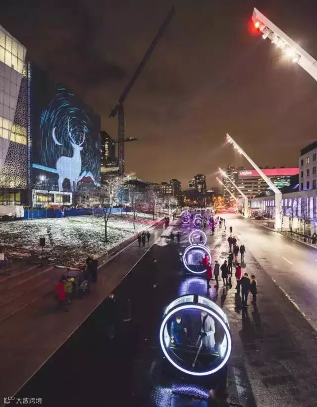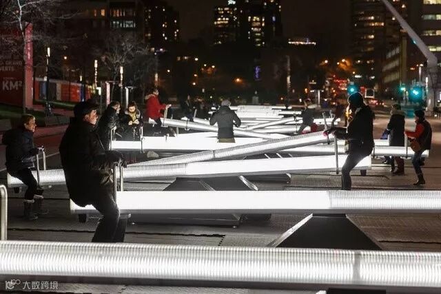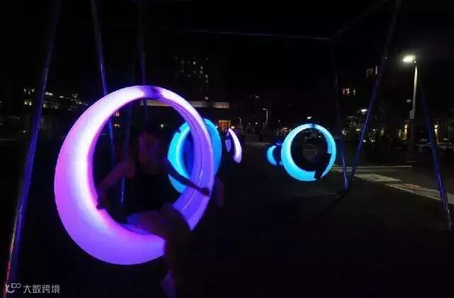 光,真的是件很奇妙的事物。光在时,我们觉得温暖四溢,觉得世界都变得柔和与美妙起来;光不在时,一切都变得暗淡,甚至深藏恐惧,让世界变得迷离与寂寥。于是现代化工业文明让夜晚变得通明,而那些有趣的人则在借助光,让城市变得更加有爱——譬如这来自“节日之城”蒙特利尔的“发光跷跷板”艺术装置。跷跷板原本都是童心永存的象征,创作人员再在每一块跷跷板,上加上LED光带,让这里似乎变成了童心未泯的圣地。而且,更有趣的是,跷跷板还会发出音乐,由多伦多作曲家 Mitchell Akiyama 创作。随着你在跷跷板上的上下起伏,跷跷板灯的强度和音乐声也会随之改变,(景观邦)让你感知来自你身体节奏的独一无二的回响,仿若穿越到那两小无猜的当年。