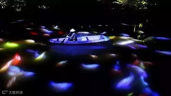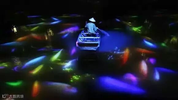 水面的每一寸涟漪都能被感应到,投射在水面上的鲤鱼可以和漂浮的小船进行互动。