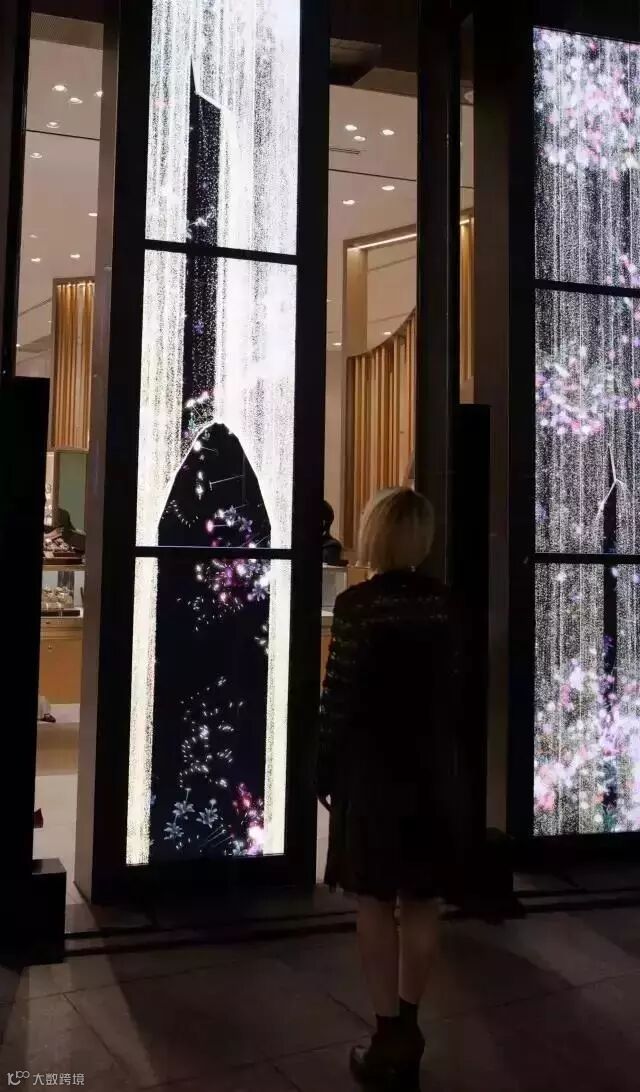水粒子的宇宙代表流动的虚拟瀑布,仿佛让人置身于气势宏伟的峡谷之间,绽放飘零的花,以运动的方式与参观者互动,仿佛让人置身于微风拂面的花海之间,水和花的元素给人灵动而真实,沉浸又沉醉的体验。