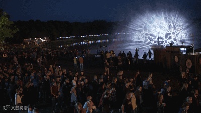 岸上的观众可控制海上的效果,海上呈现的效果与观众动作相关。做到真正参与进来的show。其运用了动作捕捉摄像头将行为记录下来传递给互动设备,实现了人与灯光秀的交互。