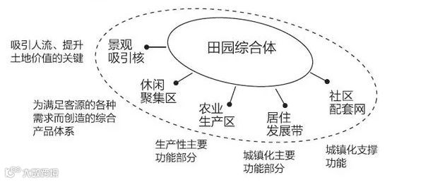 在不同的发展阶段, 生产要素的关键地位不断变化;采用田园综合体的发展模式, 生产要素及其余产业的关系更加重要, 所以问题必须从生产力要素的问题转向生产关系的问题。自十六大来逐步确立的统筹城乡发展, 工业反哺农业、城市支持农村, 建设社会主义新农村, 城乡经济社会发展一体化等一系列重大举措, 标志着我国的城乡关系进入了一个新的历史阶段。田园综合体以农业生产、乡村生活、田园景观为核心组织要素, 多产业多功能有机结合空间实体, 其核心价值是满足城市人群回归乡村生活的生活态度, 让现代社会资本真正做到反哺乡村, 促进乡村经济的发展。