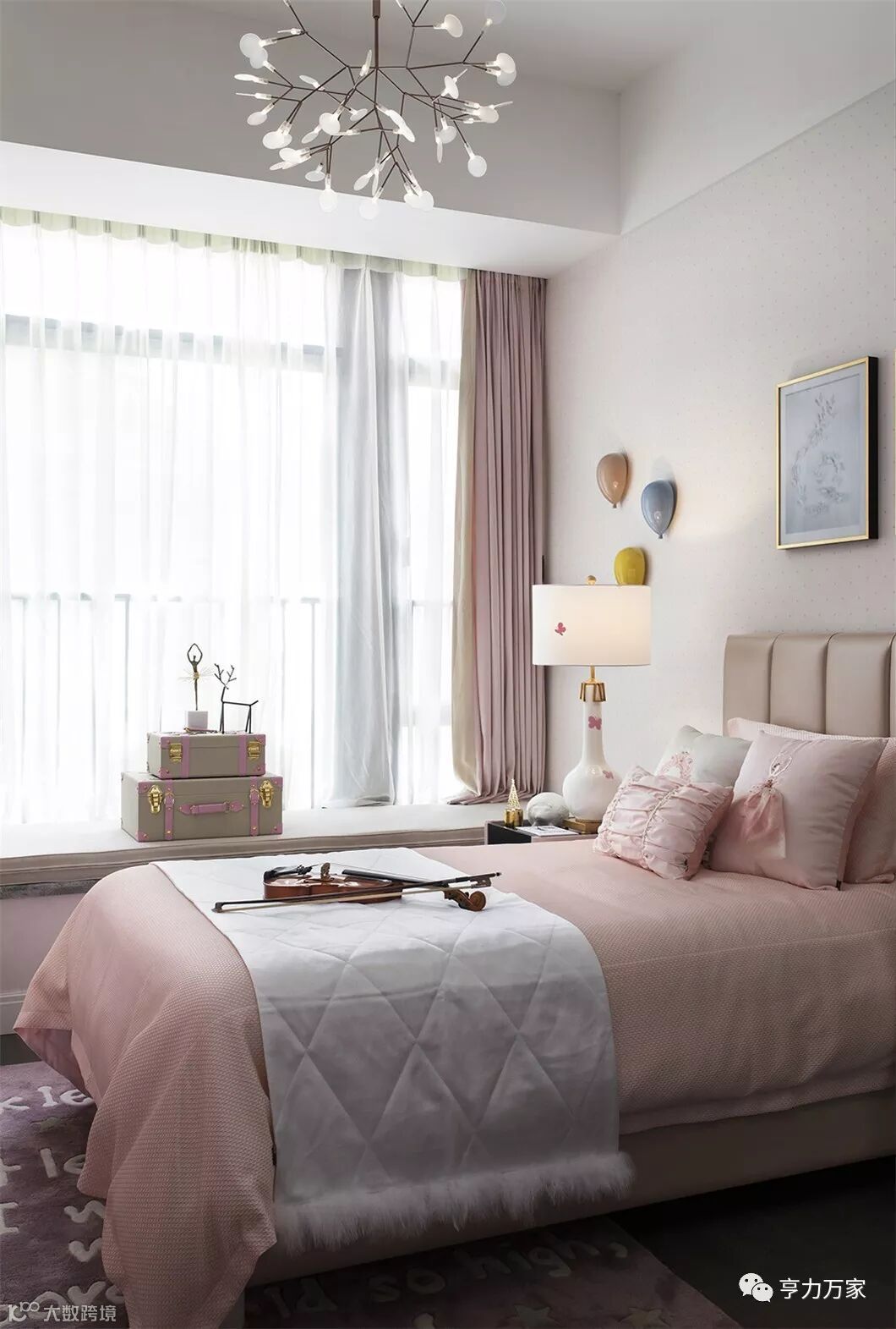 ▲女儿房以浅浅的烟粉色和橘粉色为主色,没有主流粉色的甜腻,却多了一丝阳光和温馨。整个空间弥散着清安、快乐的气息。充满艺术气质的芭蕾舞元素装点,给人带来一份直抵心灵的美好。
