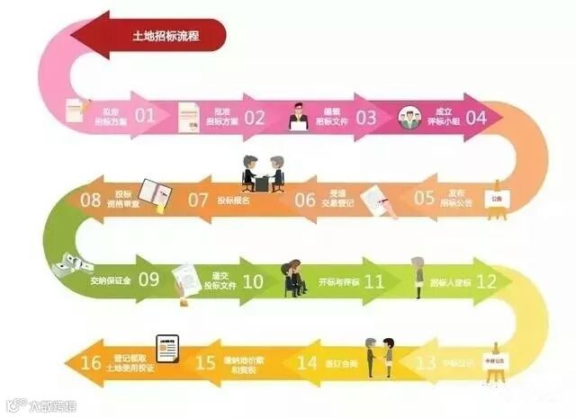 经过激烈的招拍挂竞价,如果最终不幸或者有幸中标,从中标到取得土地证要经过哪些程序呢?招拍挂竞价结束中标后会拿到一个证明性的文件,也就是《中标通知书》,或者《拍卖成交确认书》、《挂牌成交确认书》。拿到这个证明以后,要在特定的时间内给国土部门交清出让金,否则拿不到土地出让合同。目前开发商都是高负债,借钱过日子,土地出让金也不是小数目,很多公司手头的现金储备都不够交出让金的。2005年以前,允许开发商抵押一部分在开发的项目去银行贷款,用贷款交出让金。但是用这种方式,开发商的资金会很紧张,稍有差池,就可能诞生烂尾楼,05年以后,这种方式就被禁止了。所以,虽然还有很多开发商把各个项目公司贷款拿到的钱挪来挪去的买地,但是形式上,开发商首先要有钱支付出让金。