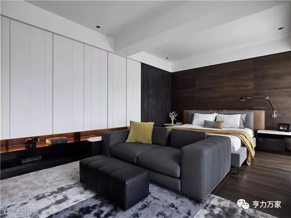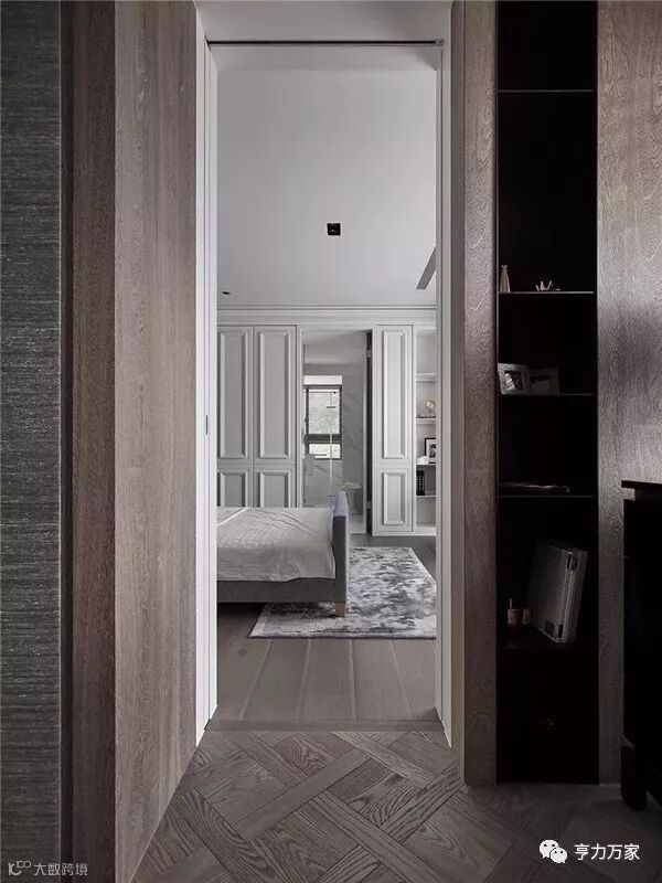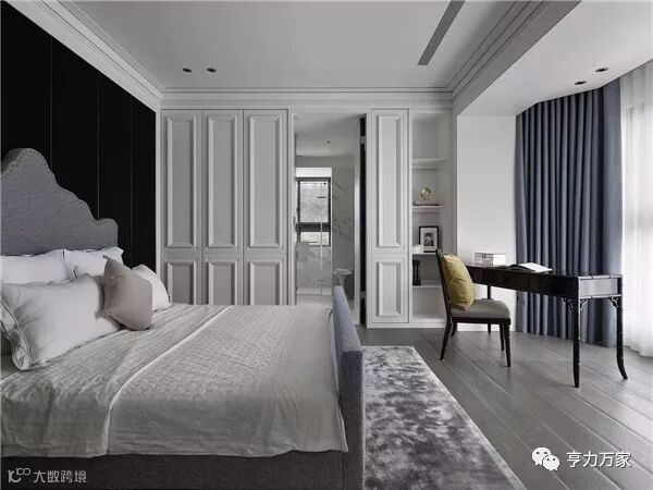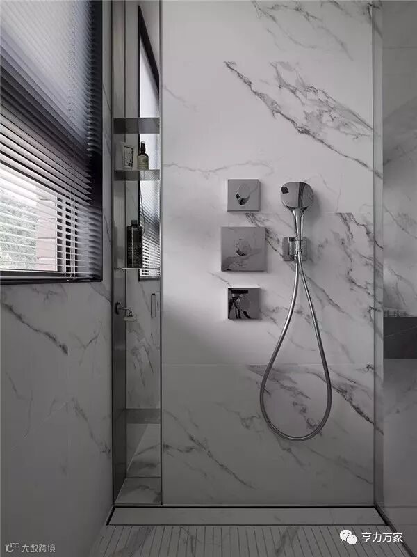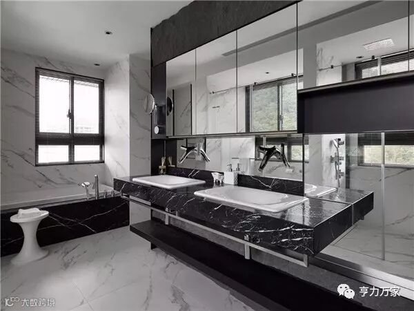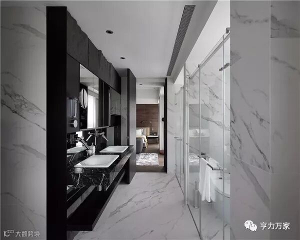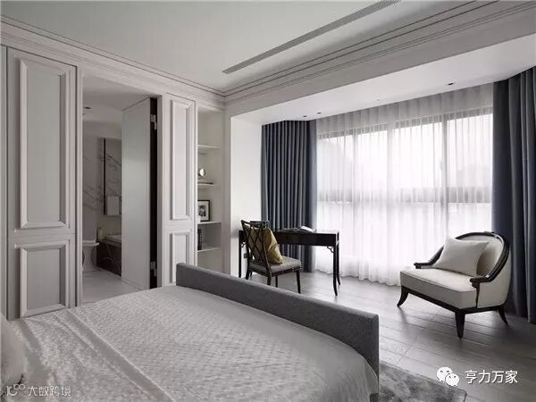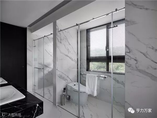 主浴空间就是串连主卧的桥梁,采用双门设计,不仅让空间有了延伸感,也让彼此的互动有了焦点。