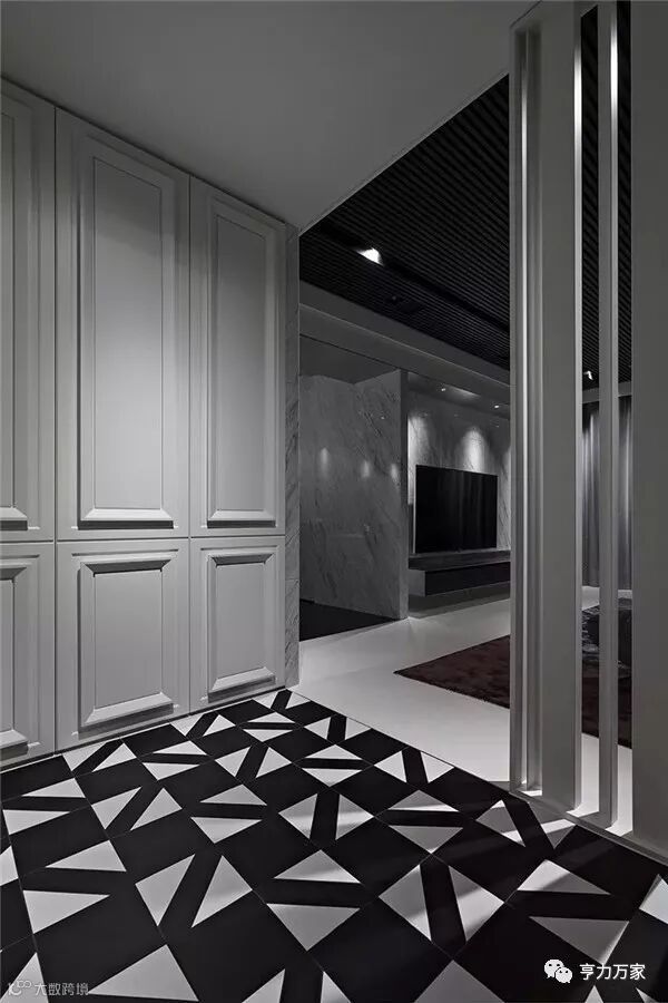 这次的空间结合的当代与现代的元素,传递出折中主义,有想法的设计师在选用的配色、软件都非常大胆,注入不规则对称的手法,在无形之中让空间有了对话及律动,让空间表情有了不同情绪。