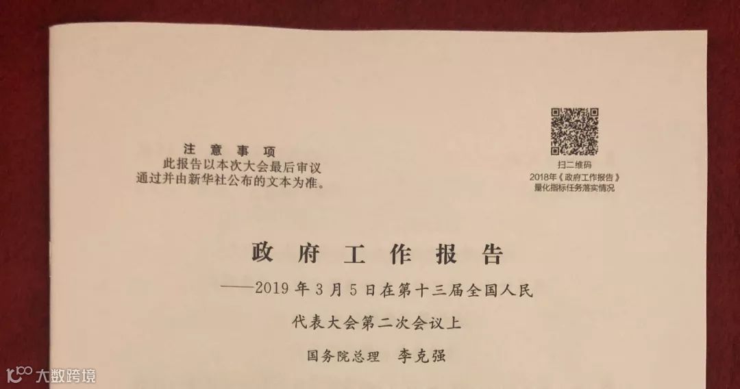 五是加大改革开放力度,发展动力继续增强。深化国资国企改革,国有企业优化重组、提质增效取得新进展。针对民营企业发展遇到的困难和问题,千方百计帮助解忧纾困。推进财税体制改革,预算绩效管理改革全面启动。改革金融监管体制,完善利率、汇率市场化形成机制。农业农村、社会事业、生态环保等领域改革不断深化。推出对外开放一系列重大举措。共建“一带一路”引领效应持续释放,同沿线国家的合作机制不断健全,经贸合作和人文交流加快推进。出台稳外贸政策,货物通关时间压缩一半以上。下调部分商品进口关税,关税总水平由9.8%降至7.5%。新设一批跨境电商综合试验区。复制推广自贸试验区改革经验。大幅压缩外资准入负面清单,扩大金融、汽车等行业开放,一批重大外资项目落地,新设外资企业增长近70% 。