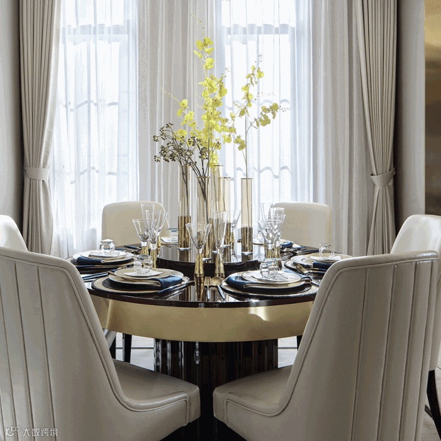 餐厅设计在简洁中保持着华丽,在时尚中流露出经典的质感。设计采用主调白和配色黑等较无色彩之原色,材质上以压花皮革、镀烙金属和玻璃素材等凸显大都会设计的精髓,家具线条呈工业设计的前卫感,而柔和的软装色系和自然光照,则展现出有別于现代主义冷冽的温馨感。
