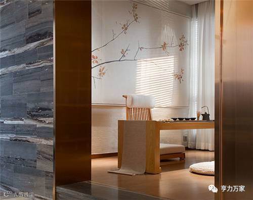 客厅拥有轻描淡写的情绪,大理石上水墨色的色调带领着空间产生从明到暗的变化,细微处满是富于变化的层次对比,如传统国画般层层渲染,江南生活的写意感受就油然而生。