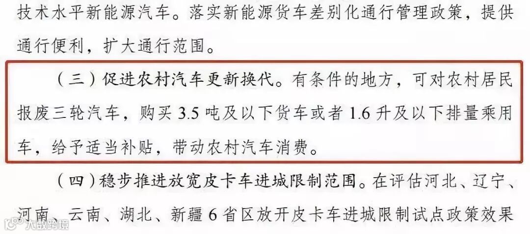 其中提到,促进农村汽车更新换代。