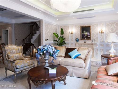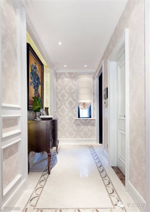 以白色的木作、仿古地砖、变化的色彩为主,用大地色系的基调,辅以金色和黑色,采用不可或缺的油画和艺术品点缀,力求使整个空间布局爽朗、简约大气,呈现华美、富丽、浪漫,而不失人文艺术的氛围。