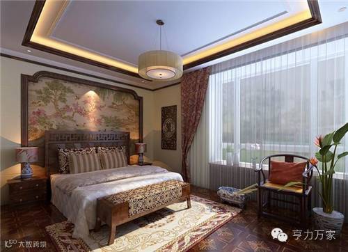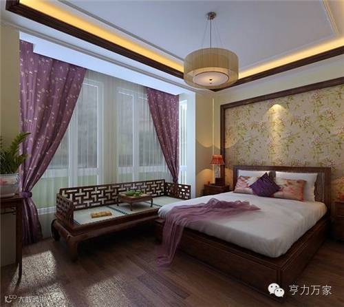 空间运用木质纹理的地板平铺,典雅风尚,很有韵味气场。床头椅的木质结构,搭配床头的镂空装饰,很是精炼简洁。