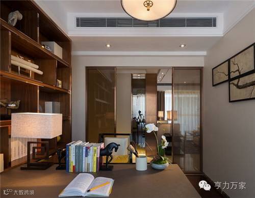 室内采用对称式的布局方式,格调高雅,造型简朴优美,色彩浓重而成熟。追求一种修身养性的生活境界。