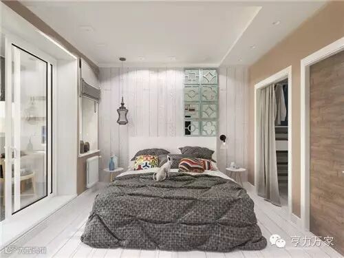 卧室以大地色系为主,让人感觉十分舒适。墙上的中国风装饰成为一大亮点。附带的浴室合理规划空间,独特的格纹墙面元素加上各种藤条收纳盒,这样简单的设计却十分贴近日常生活。