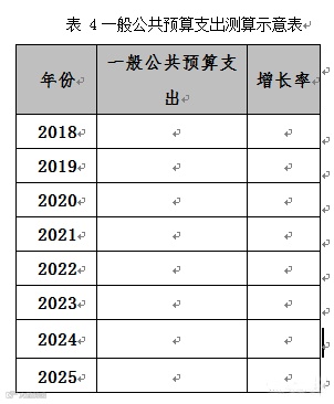 ③按年度列明未来一般公共预算支出数额,按照预测增长率对未来年度一般公共预算支出进行测算,并分年度列明。如表4所示: