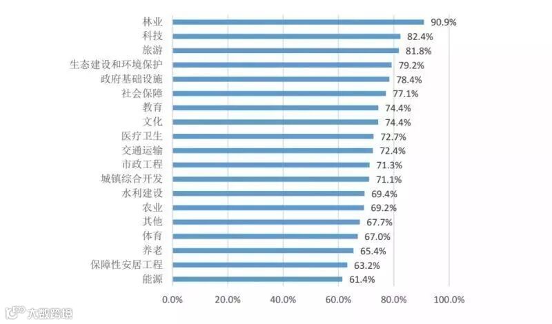 19个行业中,有12个行业财承报告规范率在70%以上,其中,林业、科技、旅游等行业规范率最高,分别为90.9%、82.4%、81.8%。(图5)