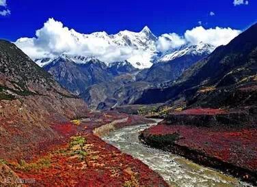 这里保持着在地球上近绝迹的纯粹, 水蓝色的星球上的最后一片净土, 在最令人心醉和神秘的秋天,“秋叶与雪峰相拥,碧水共长天一色”。