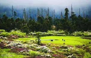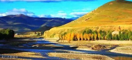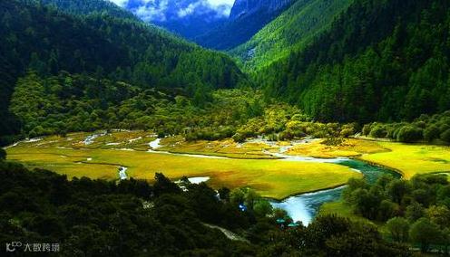 浪漫的黄绿色大草甸洋溢着温柔的美感,高山上的森林色彩斑斓,花椒和五角通体的红叶特别醒目,点缀着高山松和桦树的黄色,点缀着针叶林的绿色,诉说着香巴拉迷境秋天的童话.
