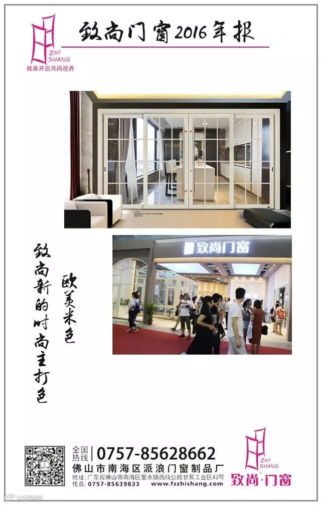 2016年,致尚门窗产品年度主题是“用设计提升体验”,更注重顾客调查。调查顾客在家中的需求与期望,为致尚产品升级与新品研发带来灵感。2016,在所有员工的共同努力下,致尚成功推出欧美米色新系列,掀起了新风尚。
