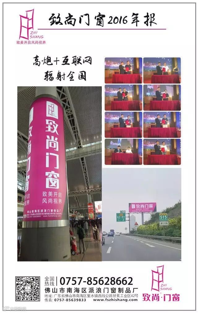 提高品牌影响力,2016年的致尚门窗采用全方位覆盖的品牌宣传模式。除了集中资源,重金投入高速公路、高铁站、机场等全国高炮广告宣传,致尚门窗还与多家一线网络品牌策划机构、媒体平台达成战略合作,为品牌插上互联网这双有力的翅膀。2016,致尚向市场全国市场,一路广而告之。