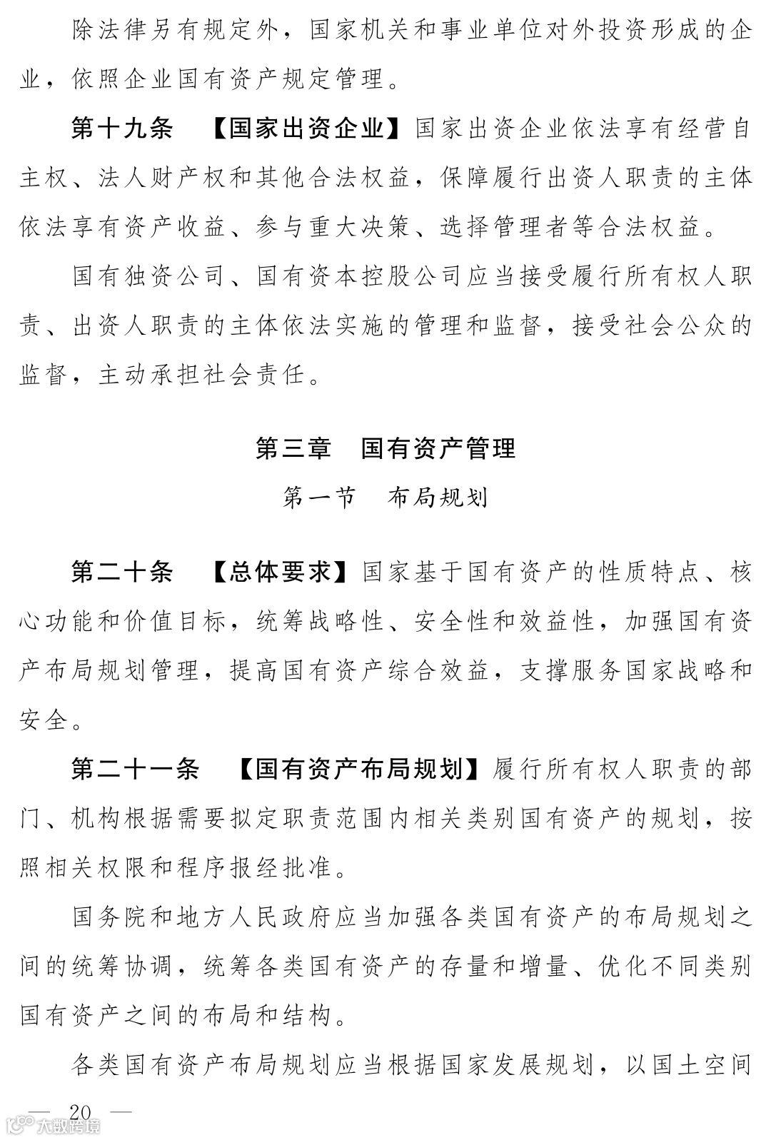 《国有资产法》(草案)设立了“国有资产管理”专章,构建了覆盖全部资产类型的宏观管理体系。