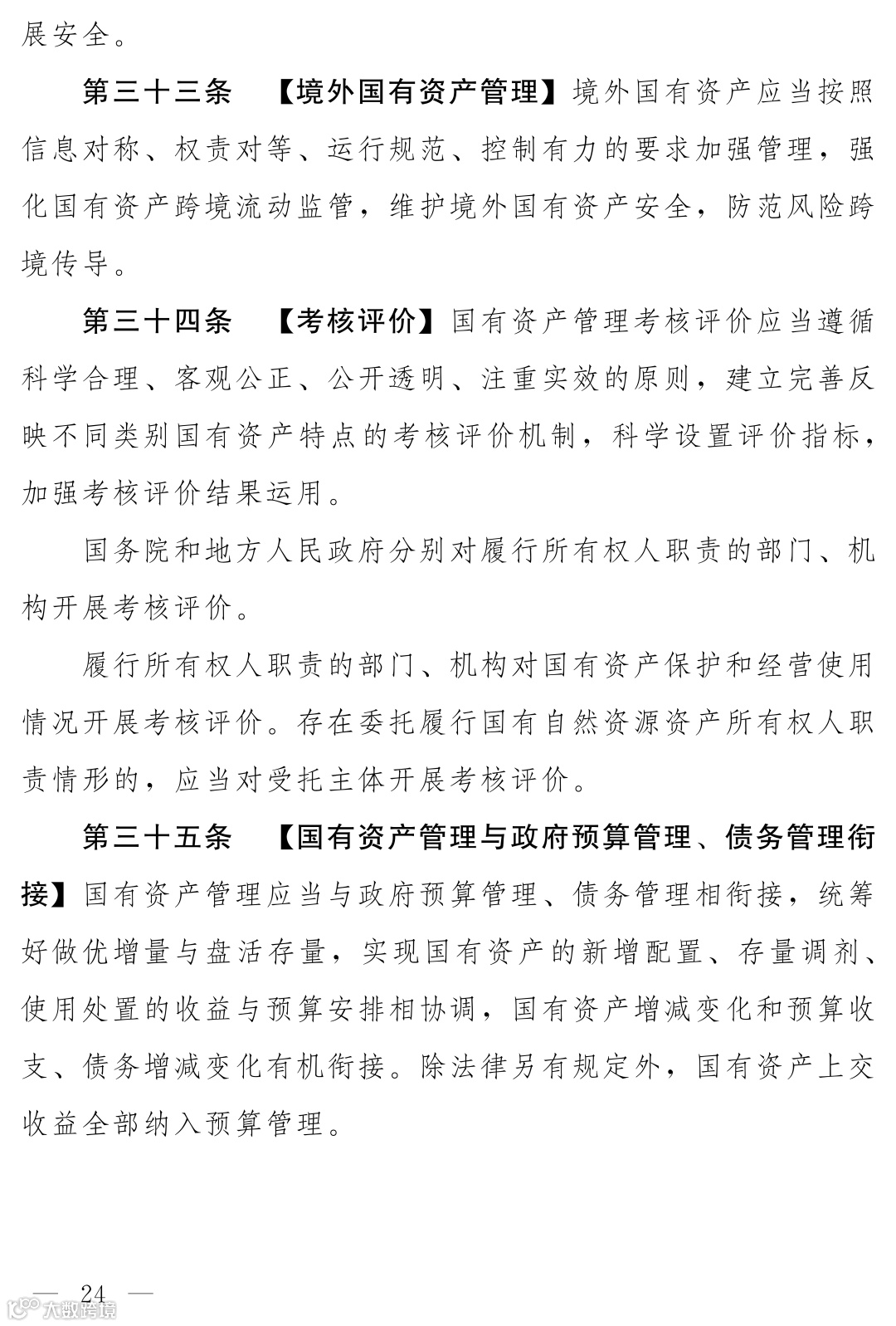 境外国有资产管理:新增专条(第三十三条),强化跨境监管与风险防范。