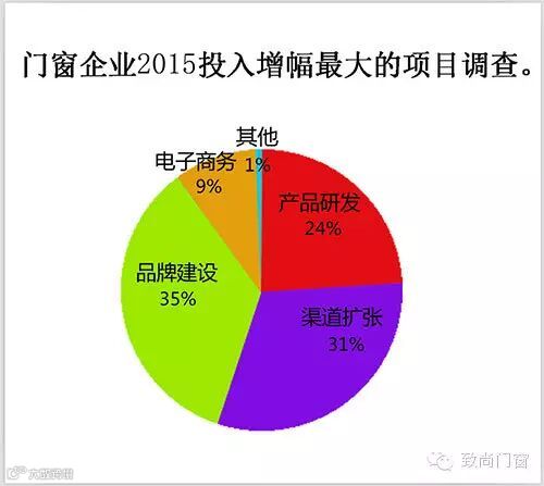 近日,门窗行业内某权威媒体推出了一项关于“门窗企业2015投入增幅最大的项目调查”,旨在了解门窗企业的发展重心,洞悉行业发展动态。据调查结果显示,35%的企业在“品牌建设”上投入最大,渠道扩张次之,产品研发则位列第三。对此,有专家认为,品牌建设、渠道扩张、产品研发是企业发展的三驾马车,三者缺一不可。