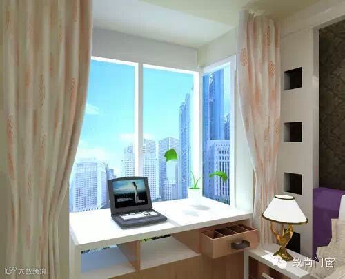 飘窗可以变成“百变”书台,你相信吗?在飘窗台面量体定做出高20—40厘米的书桌台面,这样既“省”掉了桌子脚,又节约了用料,“偷”出了意想不到的空间。再把它格成几个抽屉,能装下不少零碎东西呢。另外,还可以配合整体的书房设计,在贴着飘窗的拐角处打造一系列书房设计,比如电脑桌、书架、书柜……完工后,一个漂亮整洁又宽敞的书房就属于你了。