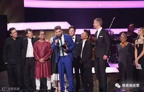颁奖典礼现场,吴彤与丝路艺术家一同上台接受荣誉,捧起格莱美金色奖杯。现场的中国人不禁欢呼雀跃。