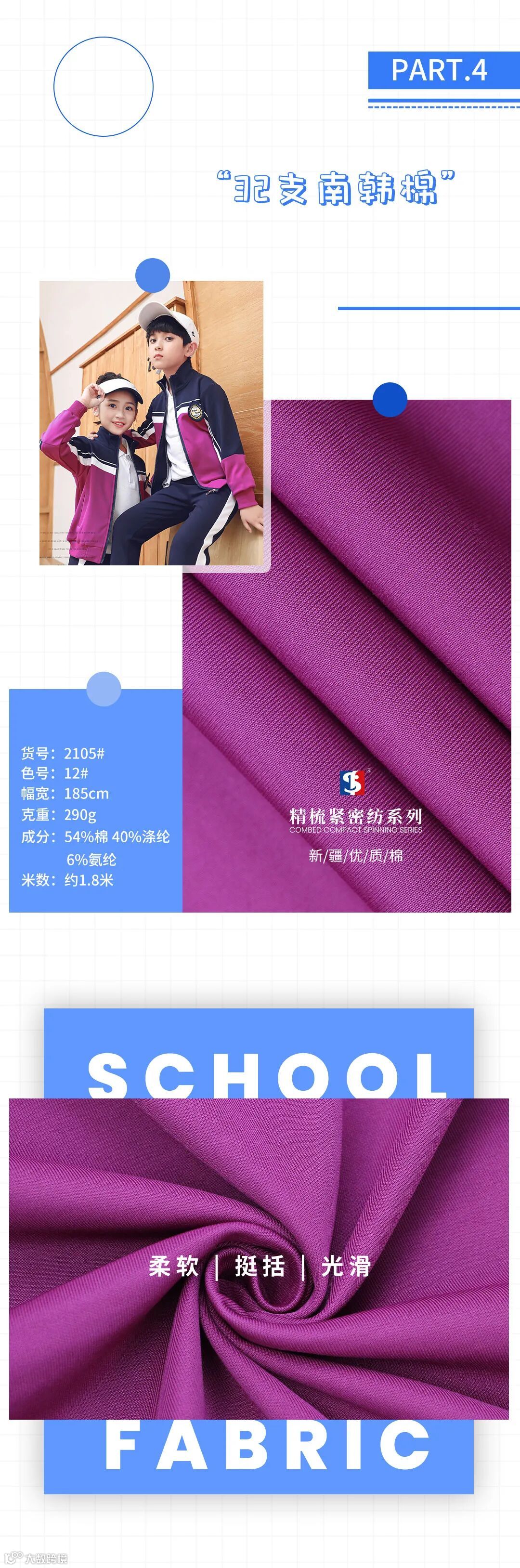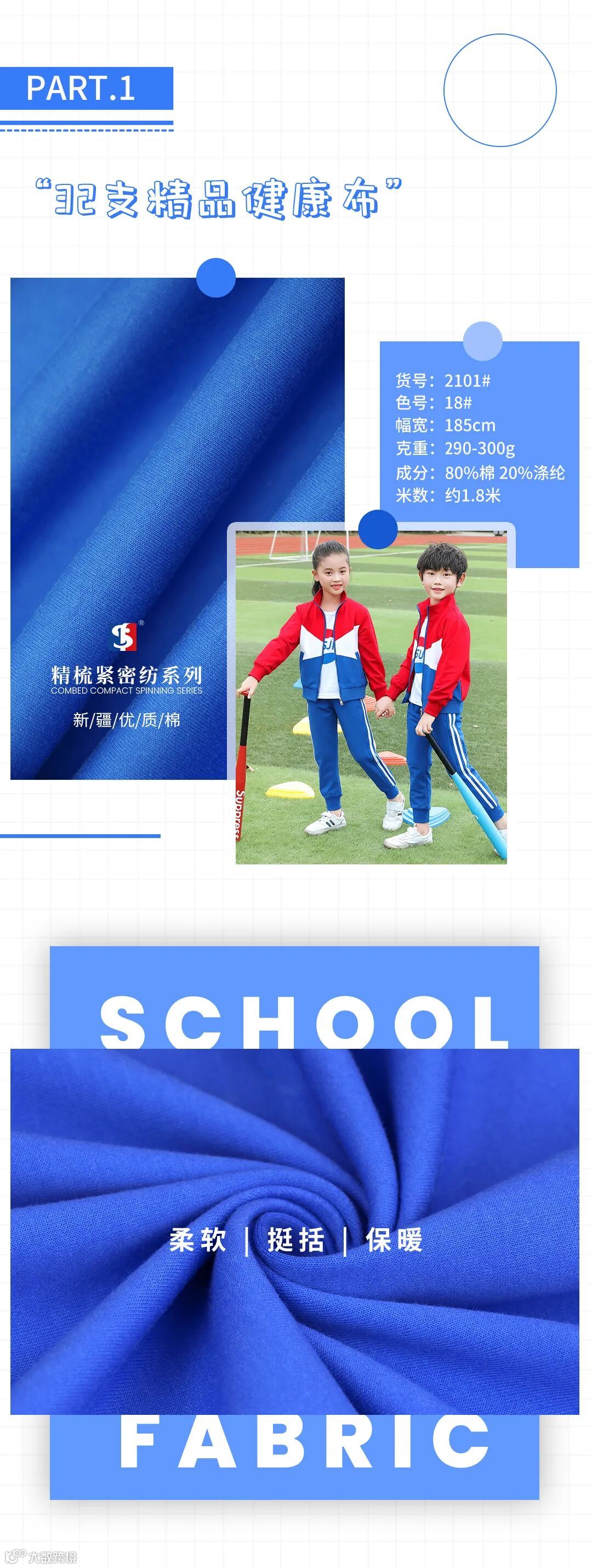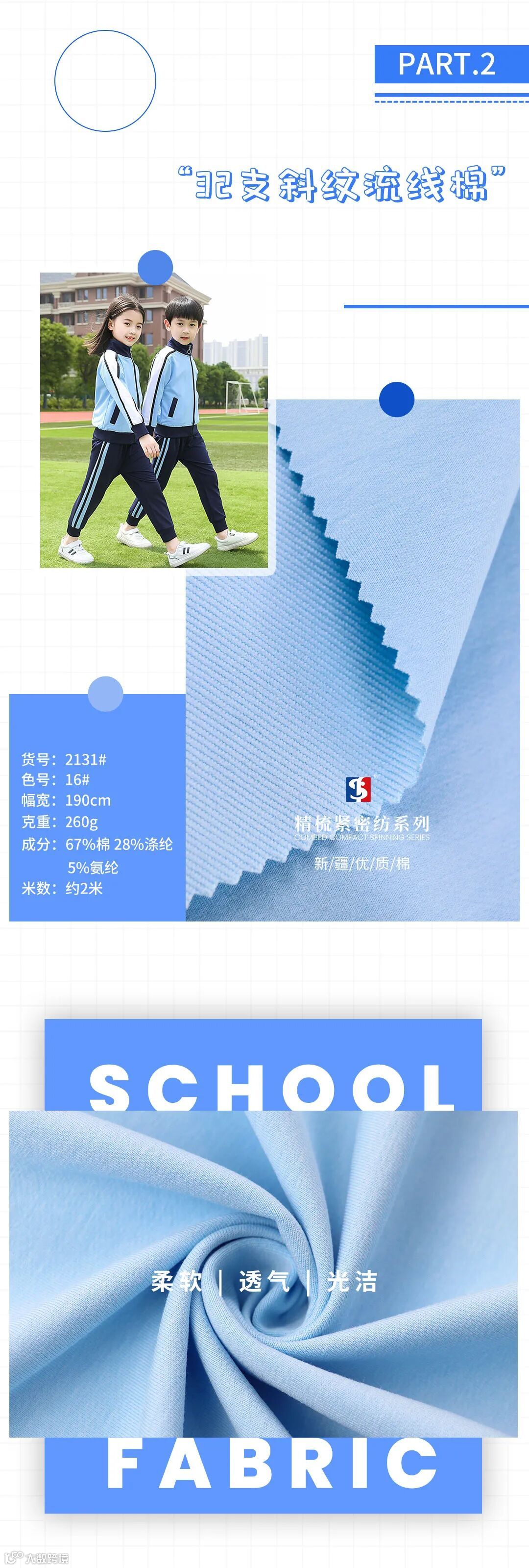 是校服、园服、运动服、棒球服等服装的主要使用面料之一。