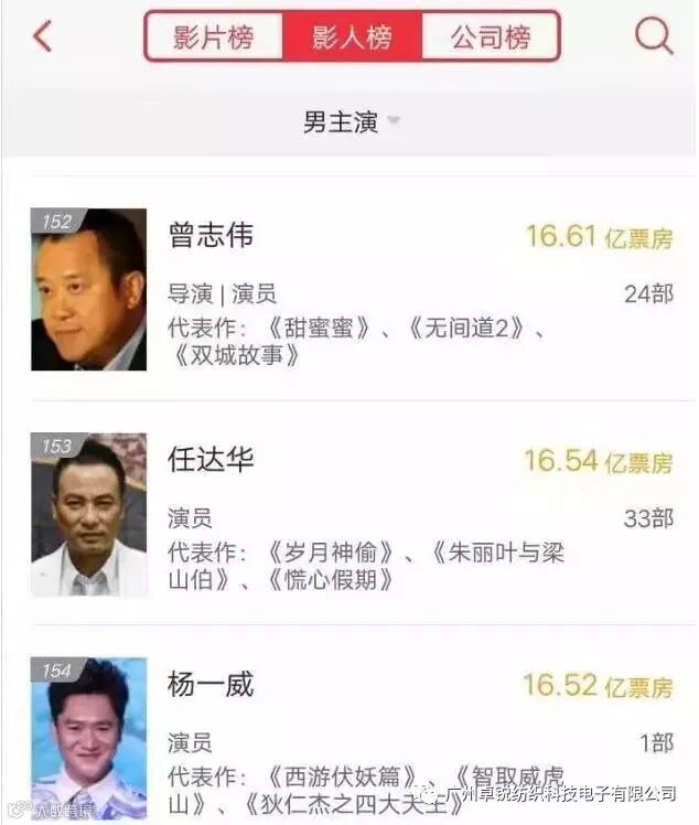 在猫眼专业版公布的影人榜中,任达华作为男主角参与的影视作品共33部,累计收获票房近17亿,榜单排名为153名。