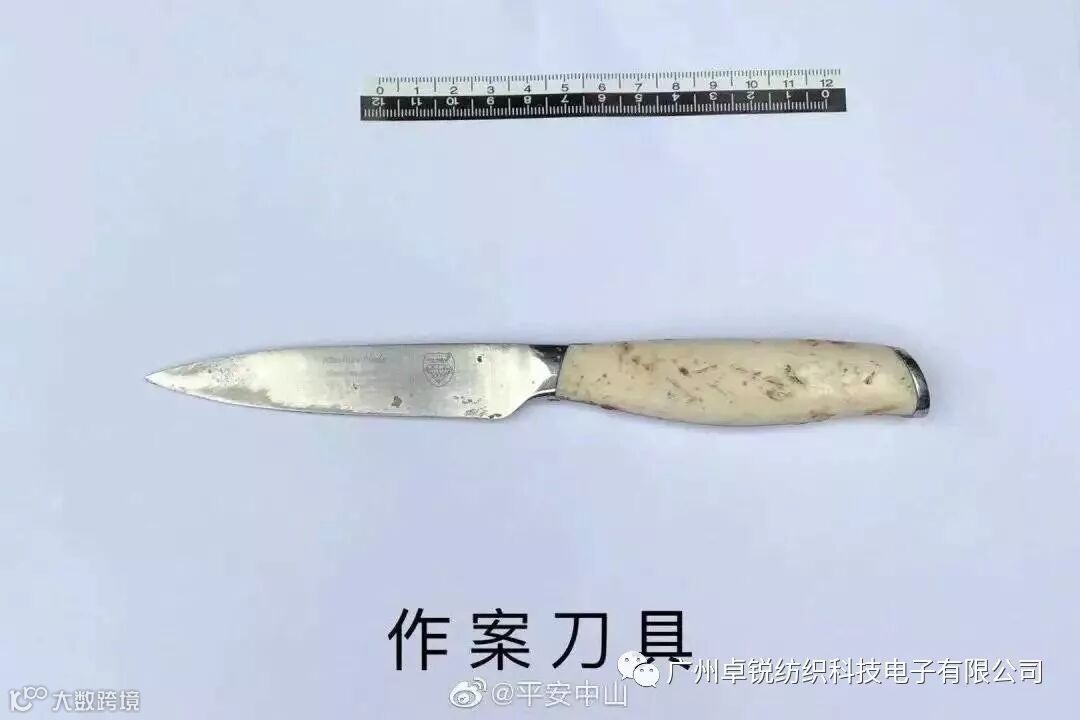 2019年7月20日10时12分许,中山市火炬开发区发生一起故意伤害案。当天香港影星任达华先生在中山市火炬开发区出席某装饰城开业庆典活动(约280人参加),进行到嘉宾登台访谈环节时,嫌疑人陈某(男,53岁,中山市人)突然从舞台正下方冲上舞台,同时从右侧裤袋掏出一把水果刀(全长20.71厘米,其中刀刃长10.94厘米,见附图)刺中任右下腹部及划伤任右手掌四指。随后嫌疑人陈某被现场保安制伏,警方接报后迅速到场将陈某带回派出所采取强制措施并作全面调查。