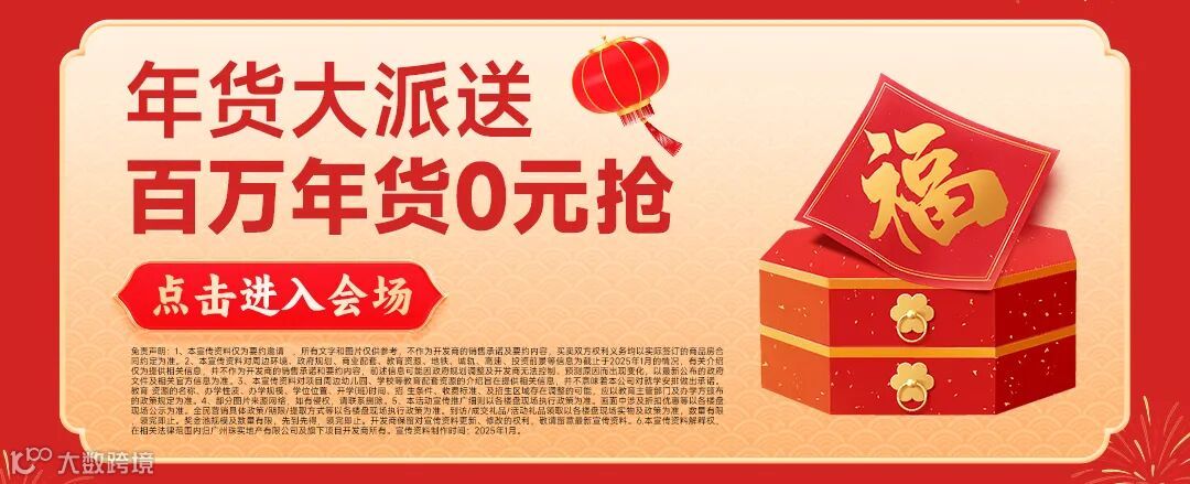 免责声明:1、本宣传资料仅为要约邀请 ,所有文字和图片仅供参考,不作为开发商的销售承诺及要约内容,买卖双方权利义务均以实际签订的商品房合同约定为准。2、本宣传资料对周边环境、政府规划、商业配套、教育资源、地铁、城轨、高速、投资前景等信息为截止于2025年1月的情况,有关介绍仅为提供相关信息,并不作为开发商的销售承诺和要约内容,前述信息可能因政府规划调整及开发商无法控制、预测原因而出现变化,以最新公布的政府文件及相关官方信息为准。3、本宣传资料对项目周边幼儿园、学校等教育配套资源的介绍旨在提供相关信息,并不意味着本公司对就学安排做出承诺。教育 资源的名称、办学性质、办学规模、学位位置、开学(班)时间、招 生条件、收费标准、及招生区域存在调整的可能,应以教育主管部门及办学方颁布的政策规定为准。4、部分图片来源网络,如有侵权,请联系删除。5、本活动宣传推广细则以各楼盘现场执行政策为准。画面中涉及折扣优惠等以各楼盘现场公示为准。全民营销具体政策/期限/提取方式等以各楼盘现场执行政策为准。到访/成交礼品/活动礼品领取以各楼盘现场实物及政策为准,数量有限,领完即止。奖金池规模及数量有限,先到先得,领完即止。开发商保留对宣传资料更新、修改的权利,敬请留意最新宣传资料。6.本宣传资料解释权,在相关法律范围内归广州珠实地产有限公司及旗下项目开发商所有。宣传资料制作时间:2025年1月。