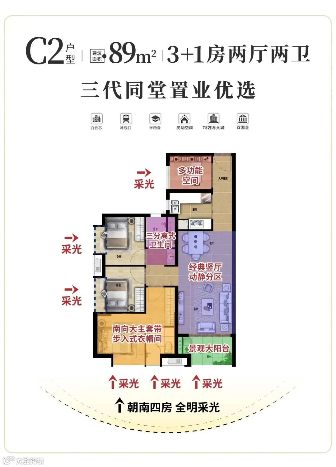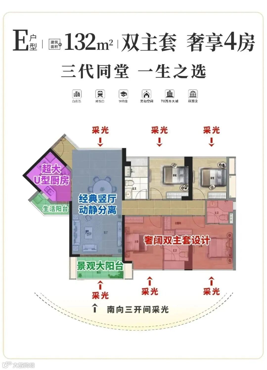 尊崇南向主套,打造优雅仪式感,让温暖的阳光照亮房间里的每个清晨。次卧升级飘窗空间,打造对空间生活的无限想象。布局设计充分考量每位居住者的体验,N+1创意空间规划,用令人心动的居家环境设计,让每位家人都能体验到居住在云湖花城的美好生活。