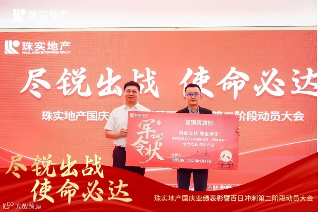 广州珠实地产有限公司营销策划部总经理帅博总及各项目营销负责人、代理公司代表领取军令状