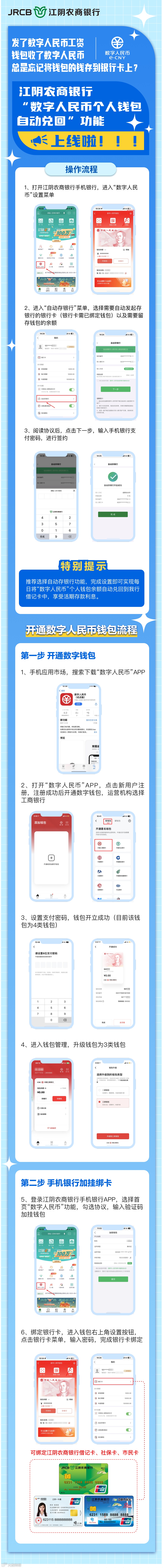 数币 | 江阴农商银行“数字人民币个人钱包自动兑回”功能上线啦!