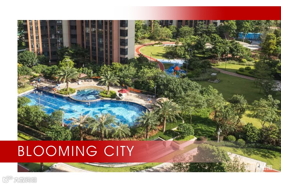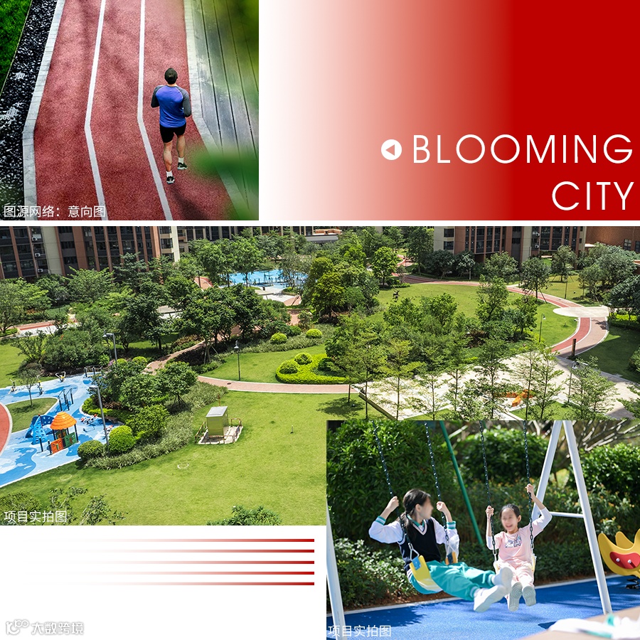 蔚蓝泳池、环氧跑道、阳光草坪、儿童乐园等