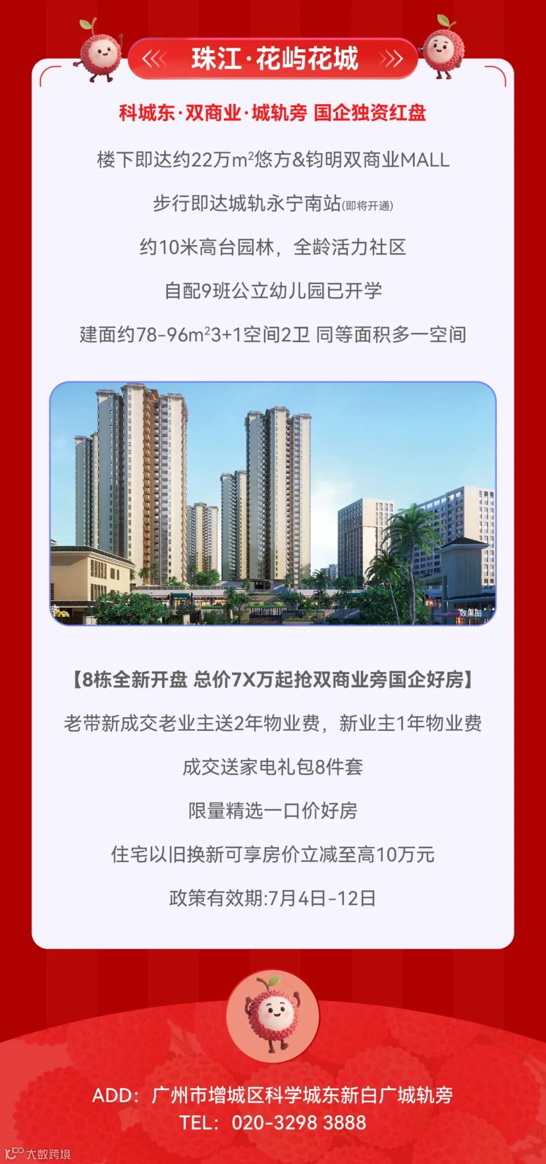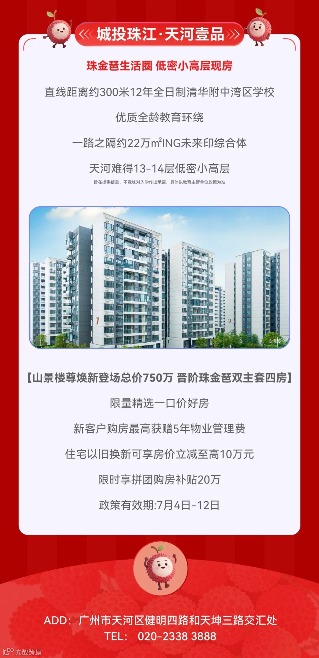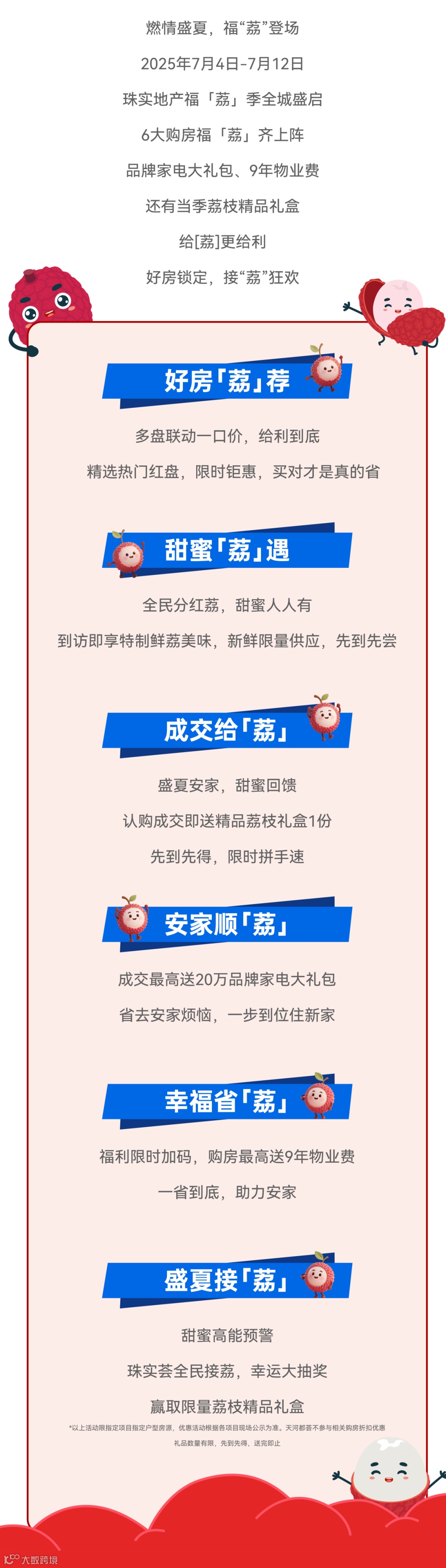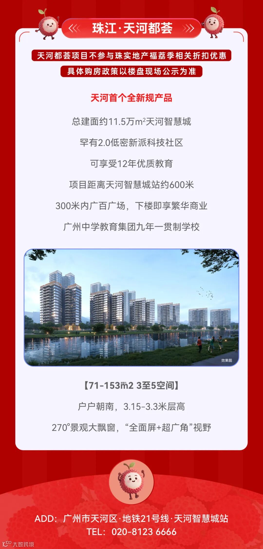 免责声明:1.本宣传资料仅为要约邀请 ,所有文字和图片仅供参考,不作为开发商的销售承诺及要约内容,买卖双方权利义务均以实际签订的商品房合同约定为准。2.本宣传资料对周边环境、政府规划、商业配套、教育资源、地铁、城轨、高速、投资前景等信息为截止于2025年7月的情况,有关介绍仅为提供相关信息,并不作为开发商的销售承诺和要约内容,前述信息可能因政府规划调整及开发商无法控制、预测原因而出现变化,以最新公布的政府文件及相关官方信息为准。3.本宣传资料对项目周边幼儿园、学校等教育配套资源的介绍旨在提供相关信息,并不意味着本公司对就学安排做出承诺。教育资源的名称、办学性质、办学规模、学位位置、开学(班)时间、招生条件、收费标准及招生区域存在调整的可能,应以教育主管部门及办学方颁布的政策规定为准。4.部分图片来源网络,如有侵权,请联系删除。5.本活动宣传推广细则以各楼盘现场执行政策为准。画面中涉及折扣优惠等以各楼盘现场公示为准。天河都荟项目不参与相关购房优惠。6.到访/成交礼品/活动礼品领取以各楼盘现场实物及政策为准,数量有限,领完即止。开发商保留对宣传资料更新、修改的权利,敬请留意最新宣传资料。7.本宣传资料解释权,在相关法律范围内归广州珠实地产有限公司及旗下项目开发商所有。宣传资料制作时间:2025年7月。