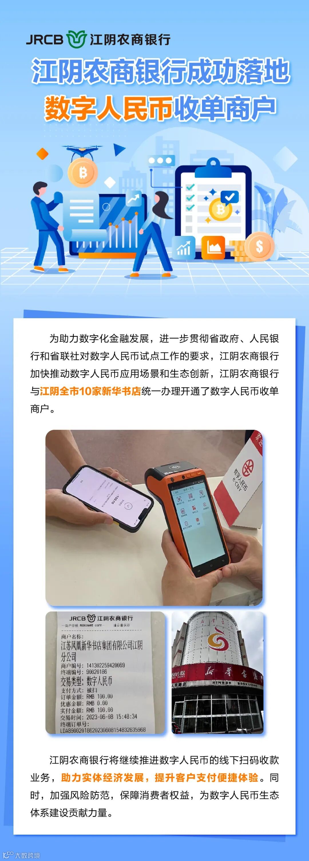 收单 | 江阴农商银行成功落地数字人民币收单商户