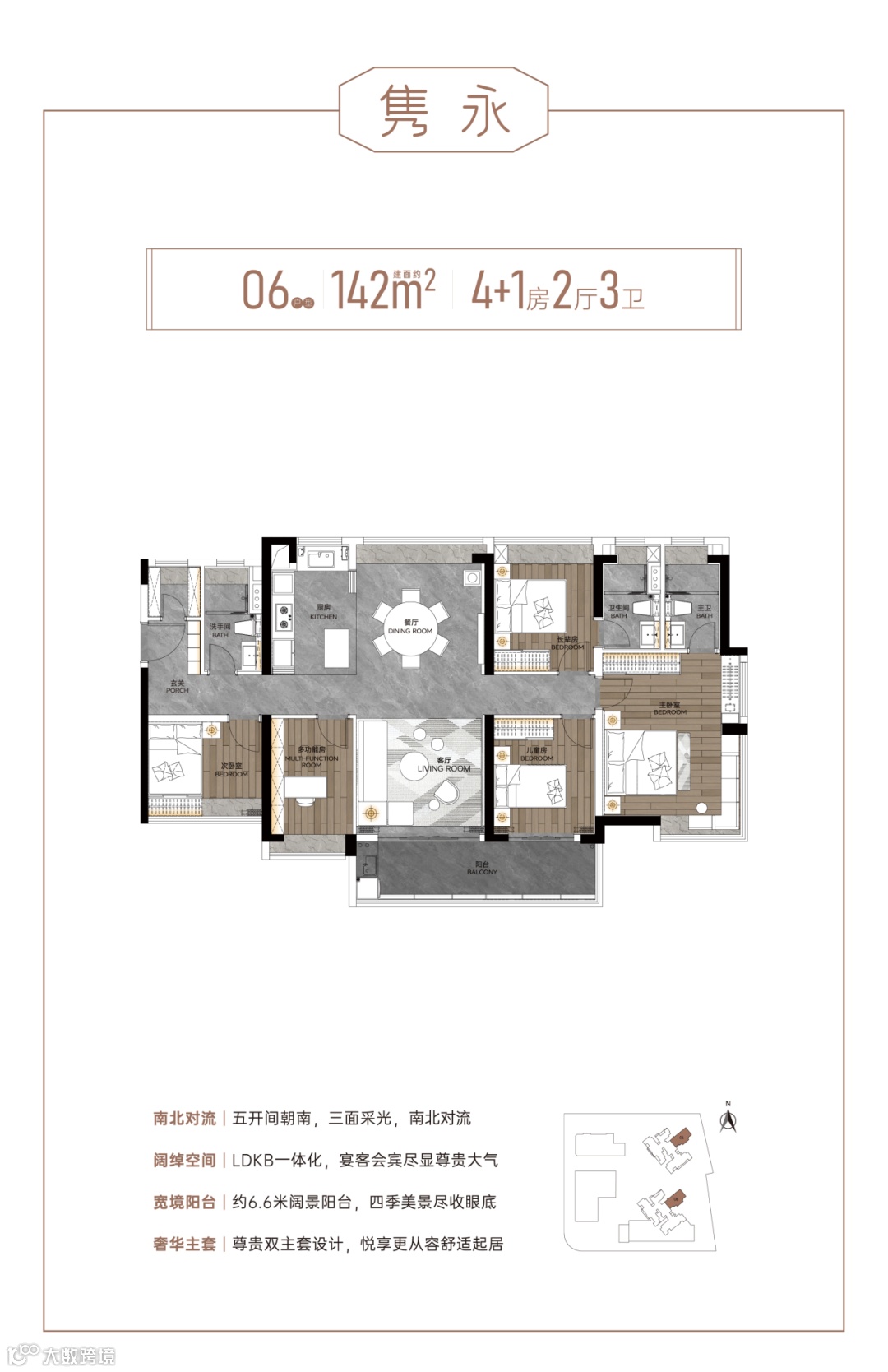华灯初上,属于家庭的欢聚时刻温馨开启。在LDKB一体化设计的宽境格局里,妻子在厨房烹饪美食,孩子在宽敞的客厅搭积木城堡,丈夫与父母品茗、闲话家常,三代同堂,其乐融融。