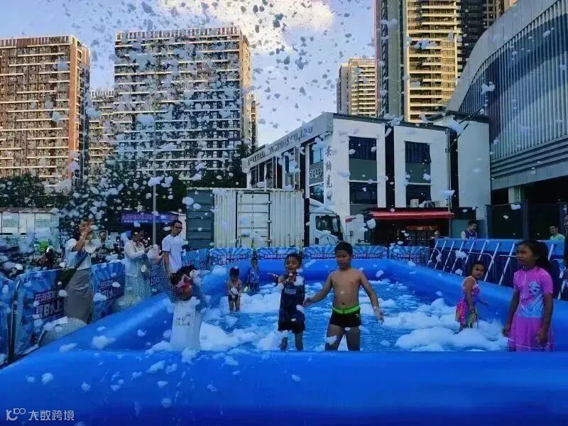 小朋友们在家长的陪同下开启“水枪大战”,大家在“泡泡海洋中”你追我赶,岸上加油声不断,现场充满着阵阵欢笑声。