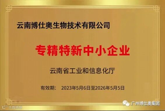 近日,经过申报、初审、复核等严格程序的遴选,博仕奥生物凭借生物工程领域的技术实力、领先的服务模式,精准的市场布局以及勇于创新的能力,荣获云南省“创新型中小企业”、“专精特新中小企业”认定。此次认定是对博仕奥生物的科研创新能力、核心竞争力、工艺设备及技术水平、公司发展前景等方面综合实力的充分认可,也是对公司技术服务能力、行业影响力和品牌价值的高度肯定。