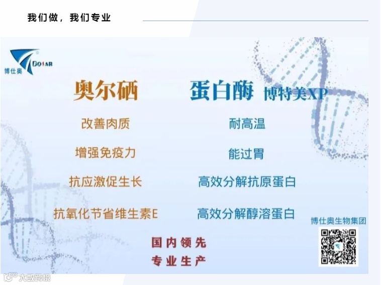 博仕奥生物集团,创立于2001年,现占地30余亩、研发人员20余人,是一家集产品研发、生产应用、设备安装及售后服务于一体的高新技术企业。经过22年的发展,“博仕奥”已经成为享誉业内酶制剂、硒系列产品的优质品牌。集团凭借自身强大的平台优势与技术、研发、生产实力,产品覆盖全国,并在世界多个国家和地区建立了业务网络。