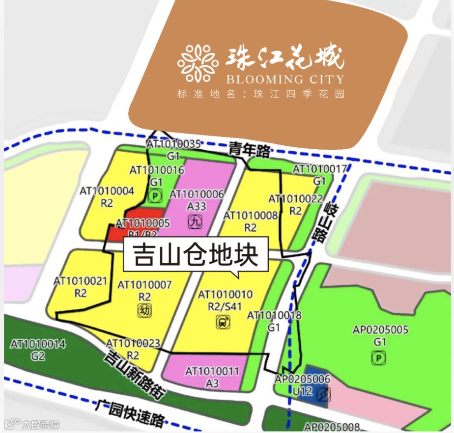 根据规划方案显示,整片吉山仓地块将构建"三横三纵"骨架路网结构,规划公交站,提升珠江花城业主交通出行;规划公园、绿化用地,将改善片区公共绿化环境;规划还提及配套建设幼儿园和九年一贯制学校,进一步提升片区教育资源;吉山仓地块成片开发,势必焕新片区城市面貌。