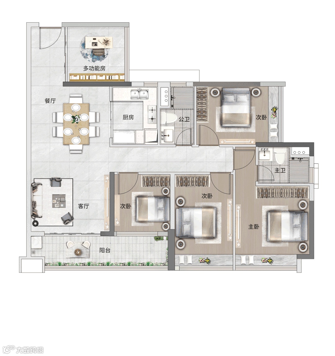建面约113平五房,奢阔主套+超大阳台