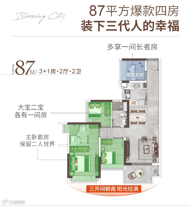 高标准的人居品质、万象齐全周边配套,一步到位。生活在这里,既享受都市的繁华,又能沉浸在人间的烟火气,一家三代各有所乐。