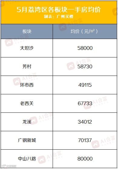 作为广州中心区之一的荔湾,各版块新房售价也“唱高调”,根据5月的实时数据,广钢新城板块的一手房均价已经高至70137元/m²。